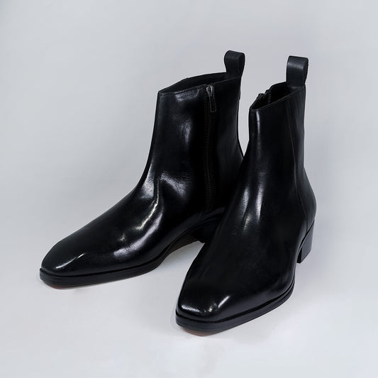 Elevate your style with our exquisitely handcrafted leather ankle boots. Made from rich, genuine leather, these boots offer a sophisticated and distinctive look. The convenient side zipper closure adds a...