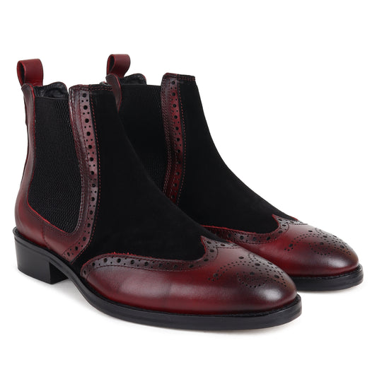 Step into a new level of sophistication with the Piel Cuero Brogue Chelsea Boot in Cherry leather and black suede. Crafted from rich hand‑finished Cherry leather, this Brogue Chelsea boot...