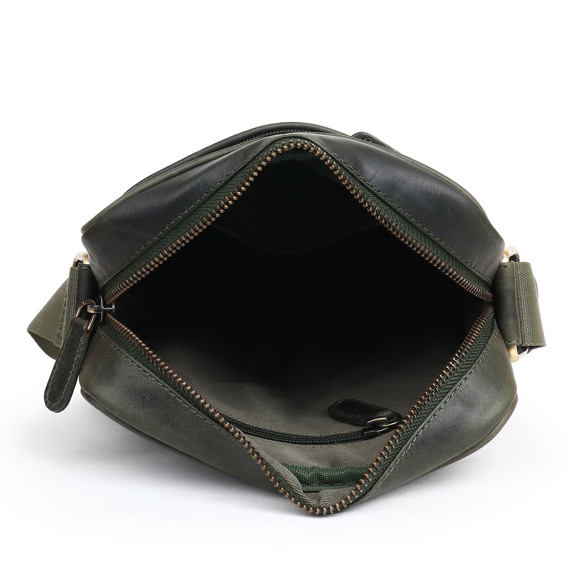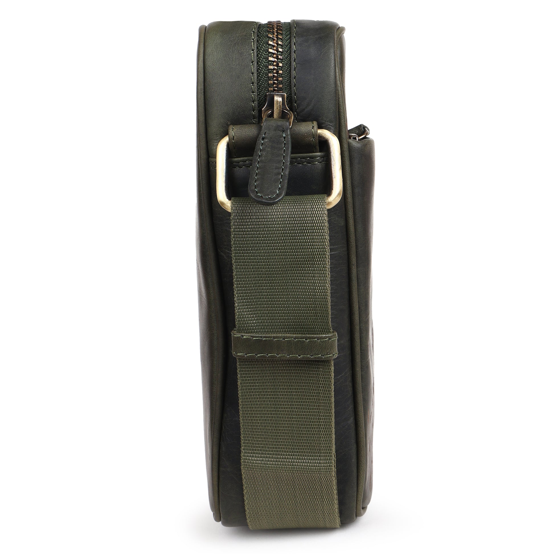 The Bottle Green Laser Work Side Bag blends everyday practicality with standout detailing. Crafted from Green Plain Softy oil pull‑up leather, it offers a smooth touch, subtle shine and natural shade variations that grow richer as you use it. The front is finished with Signature Series laser‑engraved writing, giving the side bag a premium, personalised feel. Perfect for daily carry, the bag features a zippered main compartment with internal organisation to keep your phone, wallet, keys and small accessories neatly in place. A wide adjustable strap lets you wear it comfortably across the body or on the shoulder, making this Oil Pull Up Leather Signature series Laser Work piece ideal for office commutes, travel and casual outings.