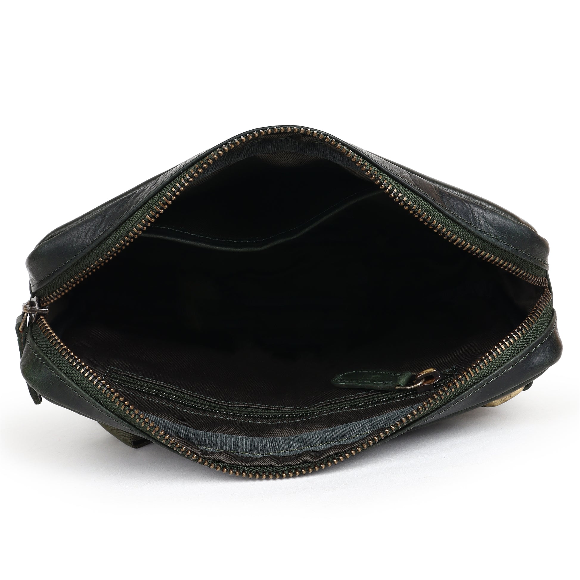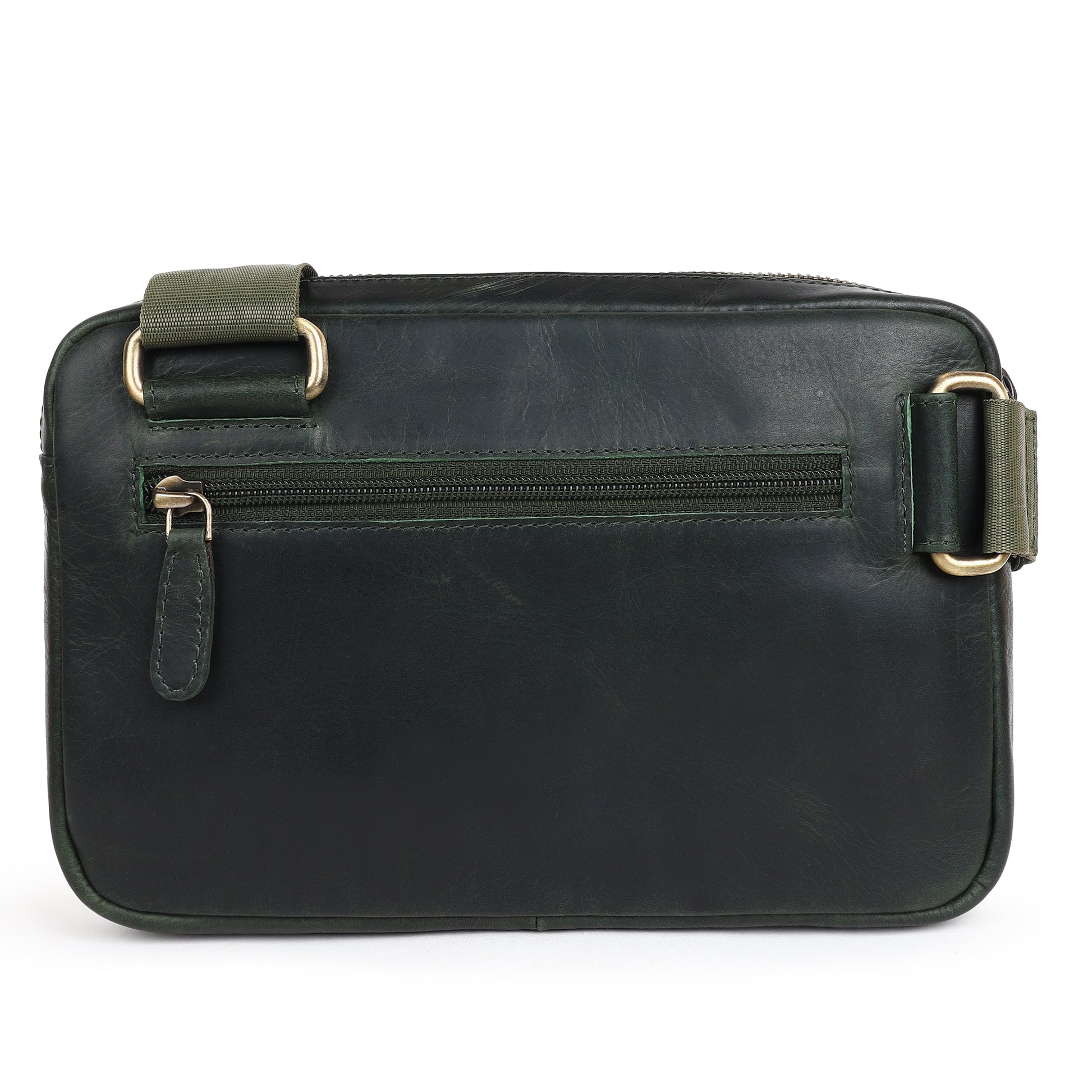 Upgrade your everyday carry with the Green Solder Cross Body Bag, made from rich Green OilPullUp leather that develops a unique patina as it ages. The clean rectangular shape and minimal hardware keep the look modern, while the oil pull‑up finish adds depth and character to the colour .Designed for daily use, it features a secure zippered main compartment and an additional back pocket to separate quick‑access items like your phone or cards. The wide adjustable strap lets you wear it comfortably as a cross body or side bag, making this green oil pull‑up leather bag a practical choice for office, travel, or casual outings