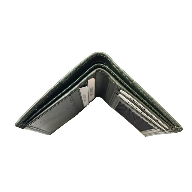 For the man who walks the line between classic sophistication and rugged individuality, the Piel Cuero Bifold Wallet is more than an accessory; it's a statement. Crafted in a deep, distinguished olive green, this wallet is designed to capture attention and admiration every time you take it out. The true artistry lies in its captivating dual-texture design. One half features the timeless, supple feel of smooth genuine leather, while the other boasts a bold, confident crocodile-embossed pattern. This striking contrast is unified by a signature decorative stitch that runs down the center, a testament to meticulous craftsmanship and a keen eye for detail. Engineered for the modern world, the wallet’s interior is as functional as its exterior is stylish. Open it to reveal a thoughtfully organized space with multiple card slots to keep your essentials secure, a clear mesh window for quick access to your ID, and a full-length bill compartment. Its classic bifold profile ensures it remains slim and comfortable in your pocket without sacrificing space. Whether you're upgrading your own everyday carry or searching for the perfect gift for a discerning man, the Piel Cuero Dual-Texture Wallet offers an unmatched blend of functionality, durability, and standout style. Carry your essentials with character.