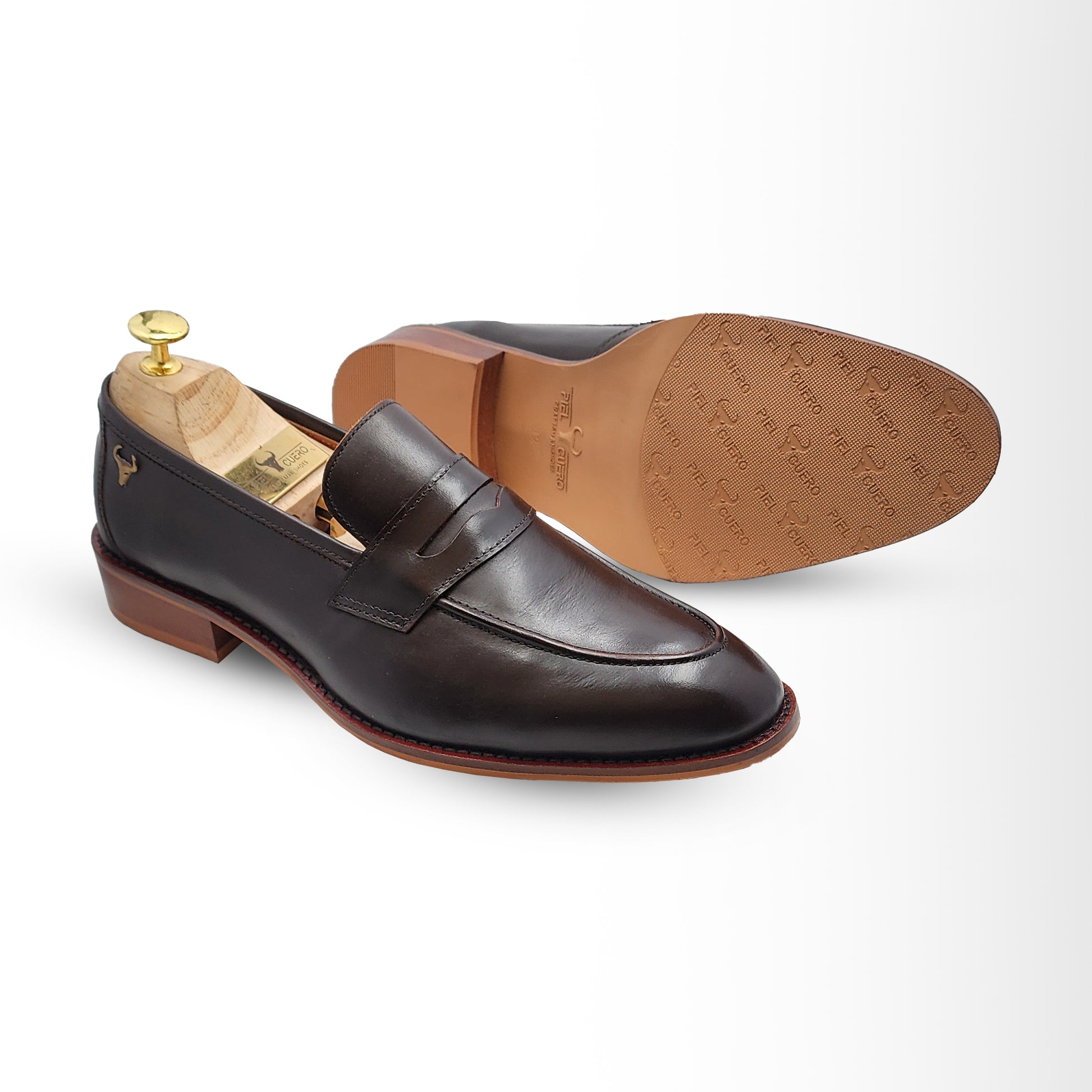 Step into timeless style and unmatched quality with the Piel Cuero Dark Brown Leather Loafers. Meticulously handcrafted from premium full-grain leather, these classic penny loafers are a versatile essential for any modern wardrobe. The rich, dark brown finish exudes sophistication, while the classic slip-on design with a distinctive penny strap offers both elegance and ease. The durable leather sole and sturdy stacked heel provide a comfortable and confident stride, perfect for long days at the office or an evening out. Every detail is a testament to Piel Cuero's commitment to craftsmanship, from the precise stitching to the subtle embossed logo on the heel. Whether you're dressing up a suit or elevating a casual look, these loafers are the perfect blend of tradition, comfort, and refined style.