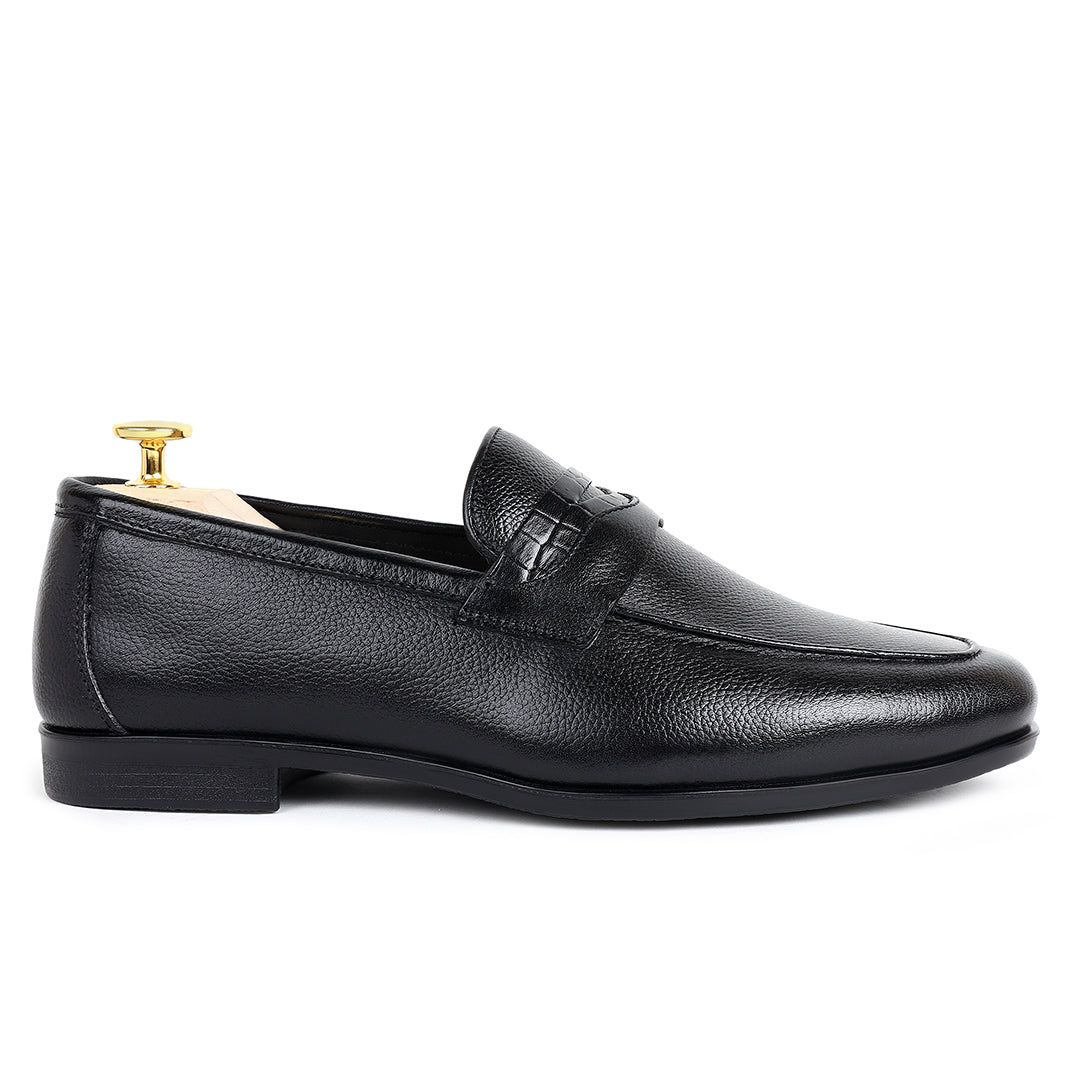 Experience understated luxury with the Piel Cuero Royale Signature Black Leather Horsebit Loafers for Men. Expertly crafted from premium genuine leather, these loafers feature a rich black pebbled texture and a sleek metal horsebit detail, delivering a timeless, refined aesthetic.