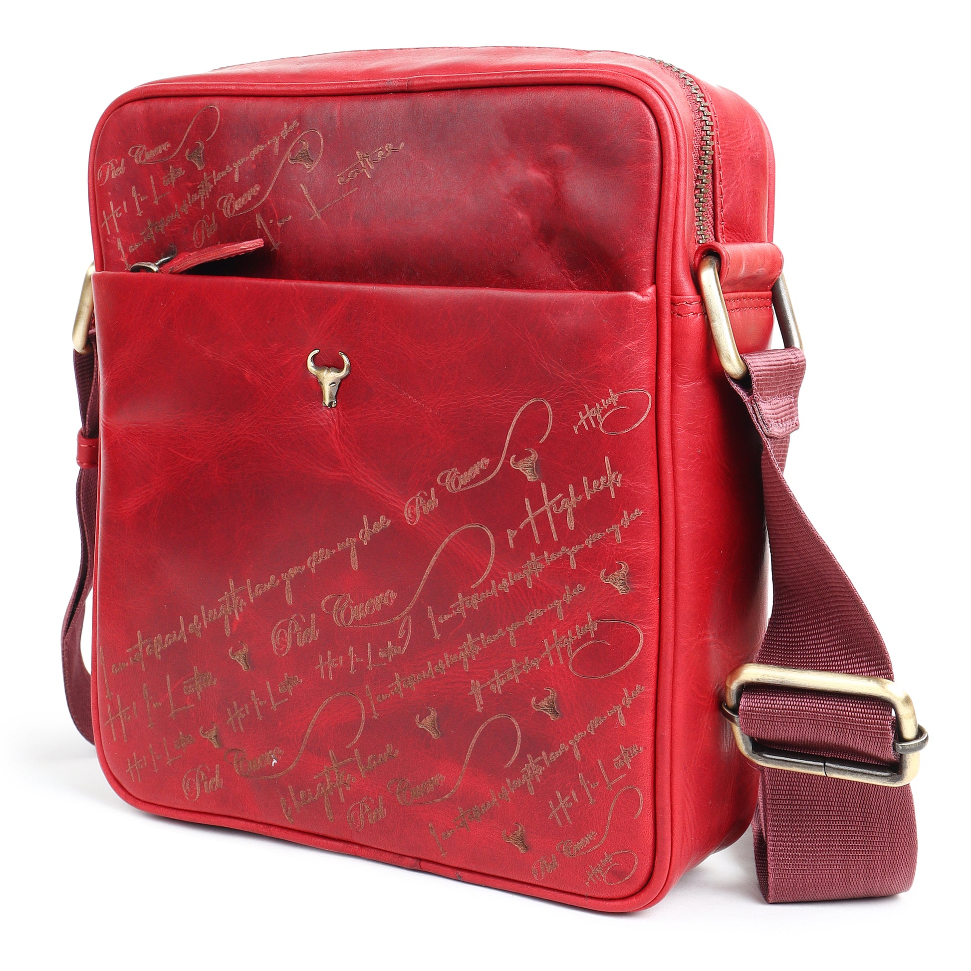 Bring colour and character to your daily carry with the Red Laser Work Side Bag from Piel Cuero’s Oil Pull‑Up Leather Signature Series. The Red/Cherry Plain Soft leather is tanned with oils and waxes, creating natural highs and lows in shade and a soft handfeel that only improves as the bag ages. Intricate laser‑engraved script on the front panel adds an artistic touch, making this more than just a functional side bag. Designed as a practical cross‑body, it features a zipped main compartment with inner pockets to organise your phone, wallet, keys and other essentials. The adjustable shoulder strap lets you wear it comfortably across the body or on one side, making this Red Oil Pull Up Leather Signature series Laser Work bag ideal for work, travel and casual outings alike.